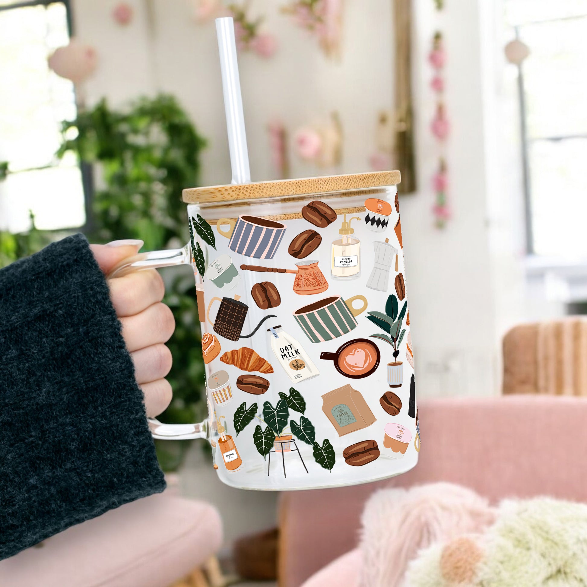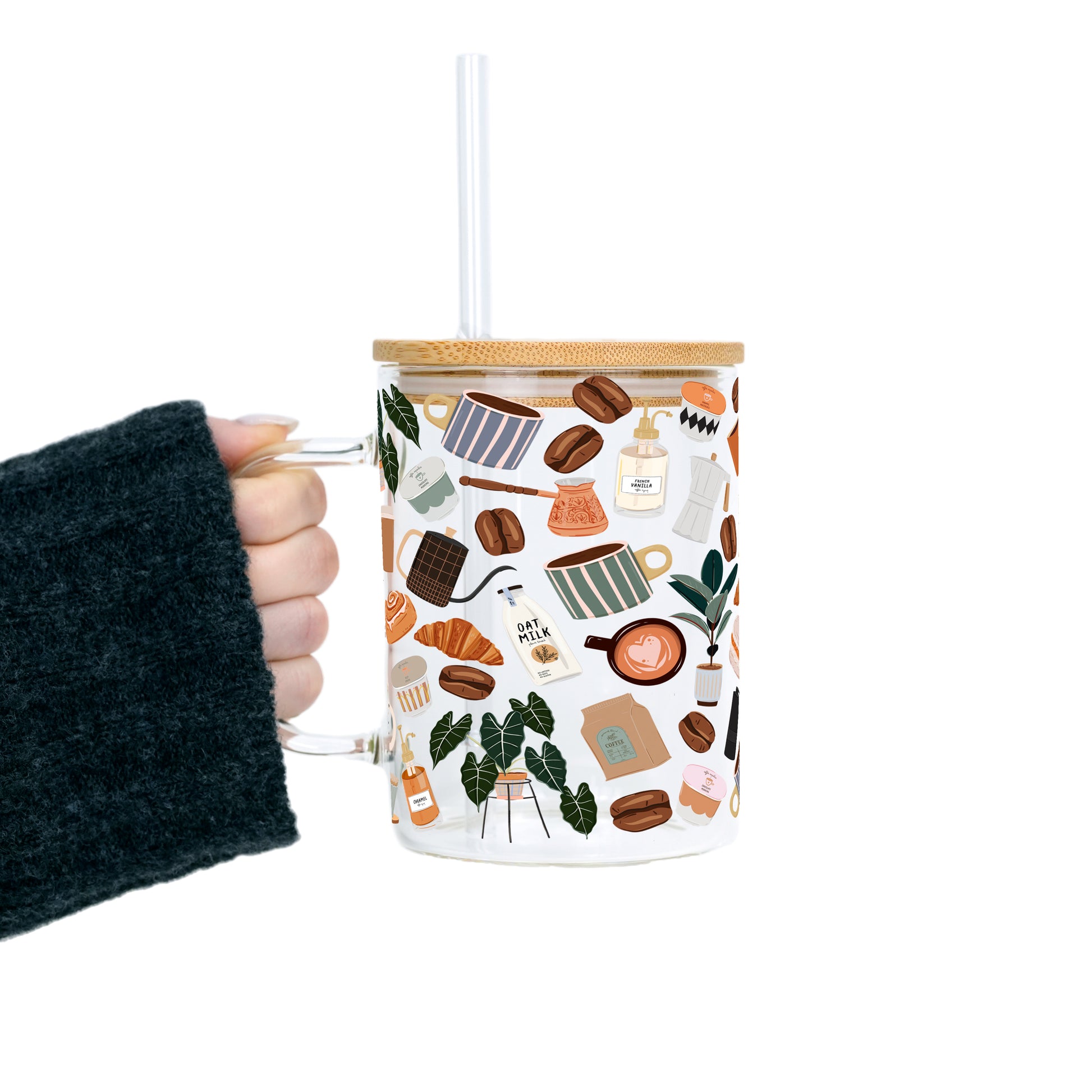 Cafe Cutie Clear Glass Mug with Lid & Straw