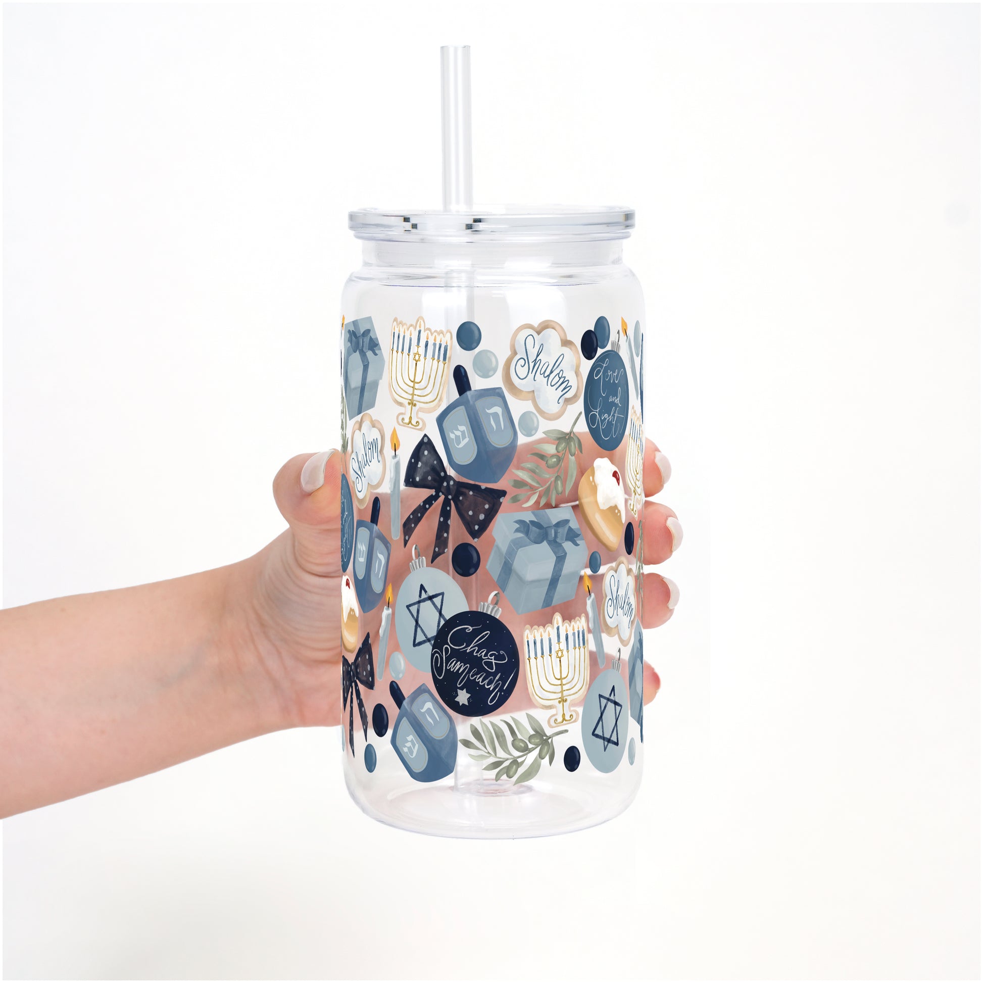 Eight nights, one perfect cup. Meet your new Hanukkah favorite, covered in our in-house hand-drawn, watercolor illustrations of dreamy dreidels, glowing menorahs, sufganiyot and more. With the most beautiful shades of blue, it’s cozy, festive, and just the right amount of extra.