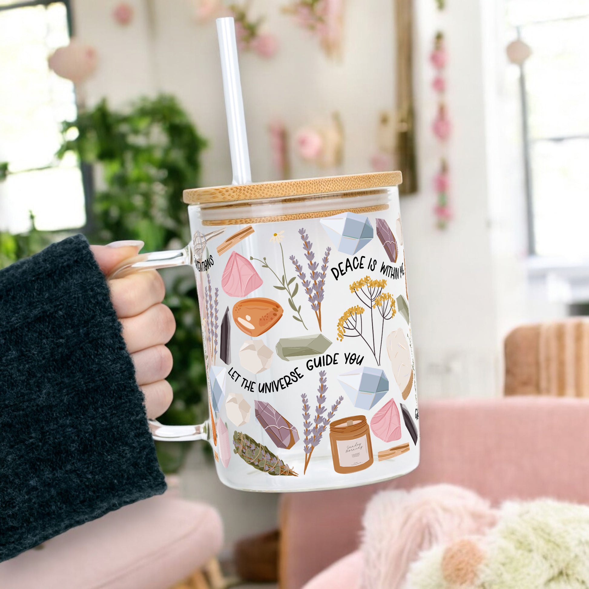 Daily Intentions Clear Glass Mug with Lid & Straw