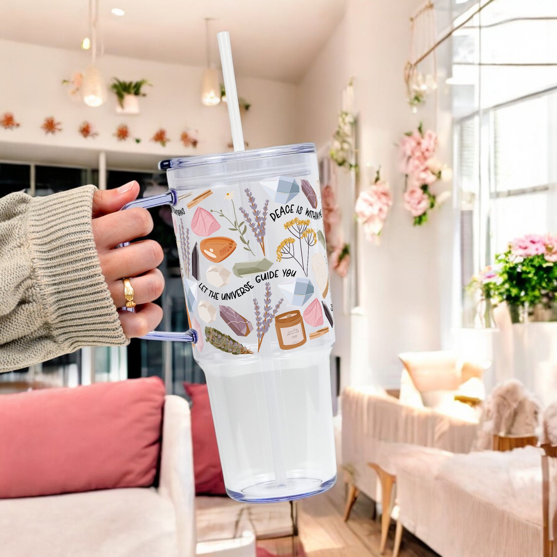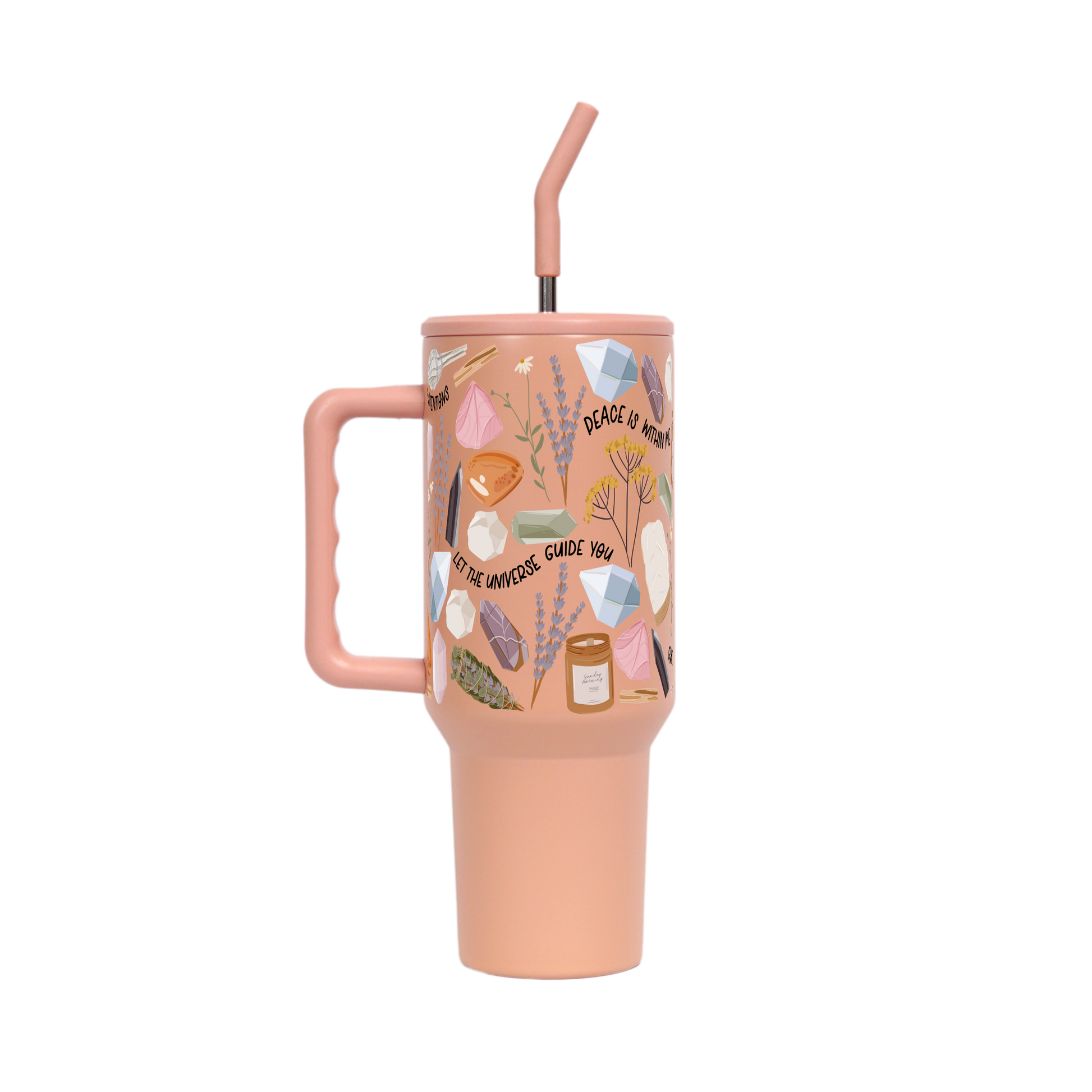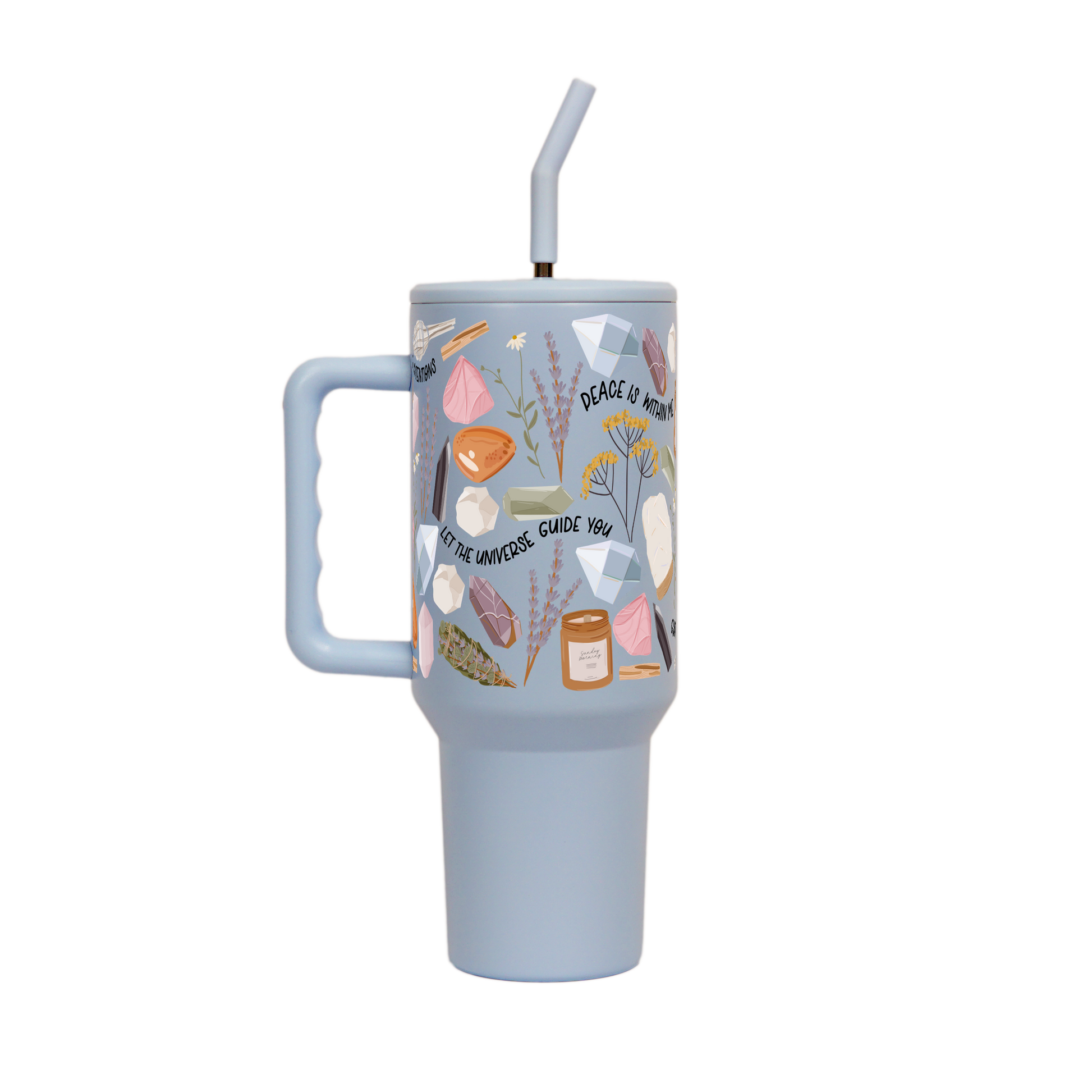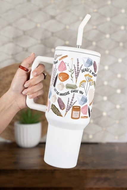 Limited Edition Metal: "Daily Intentions" Tumbler with Handle Lid & Straw
