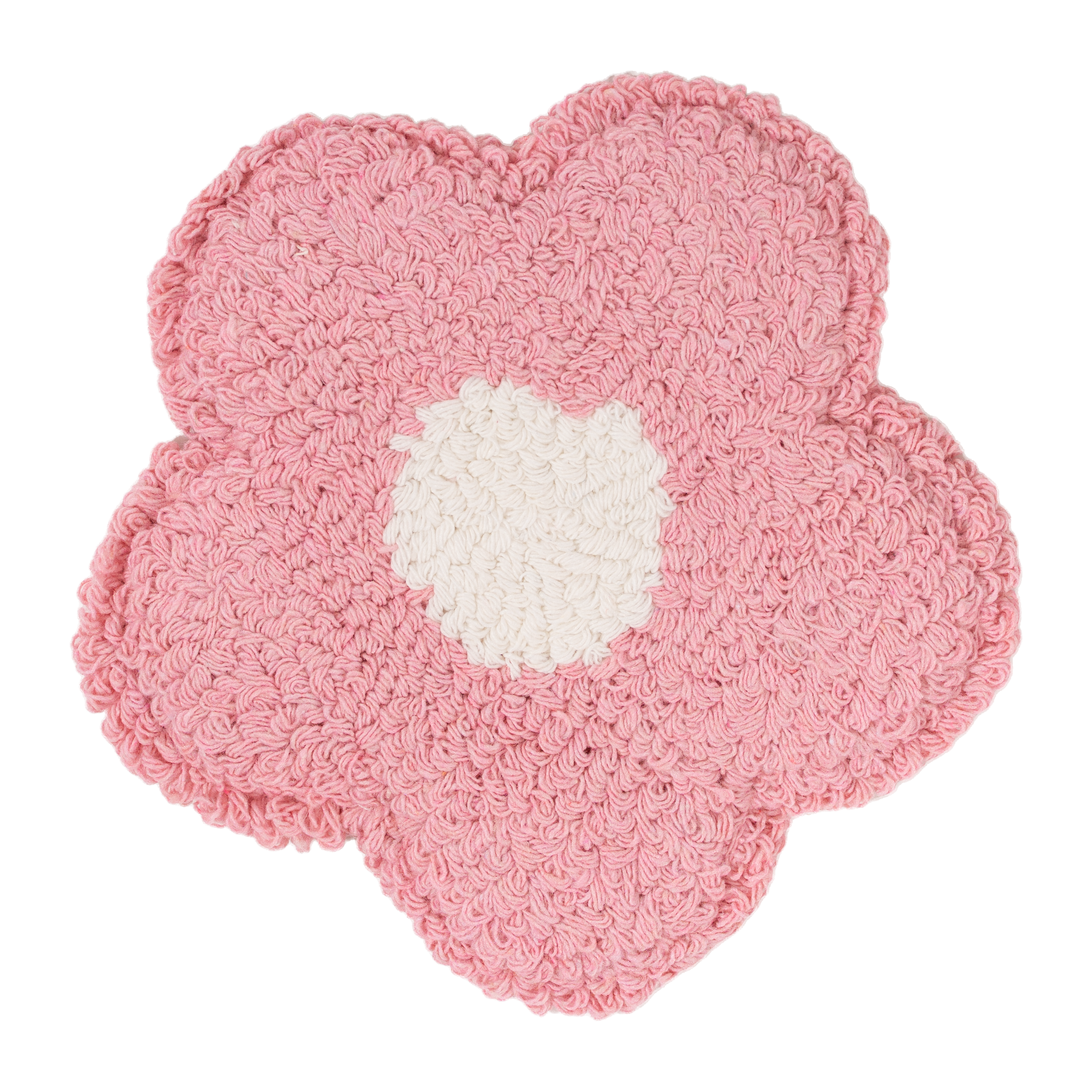 This handmade pink crochet flower mug rug adds a soft, coquette touch to your desk, coffee cart, or vanity. Each one is crafted from thick, absorbent yarn .
