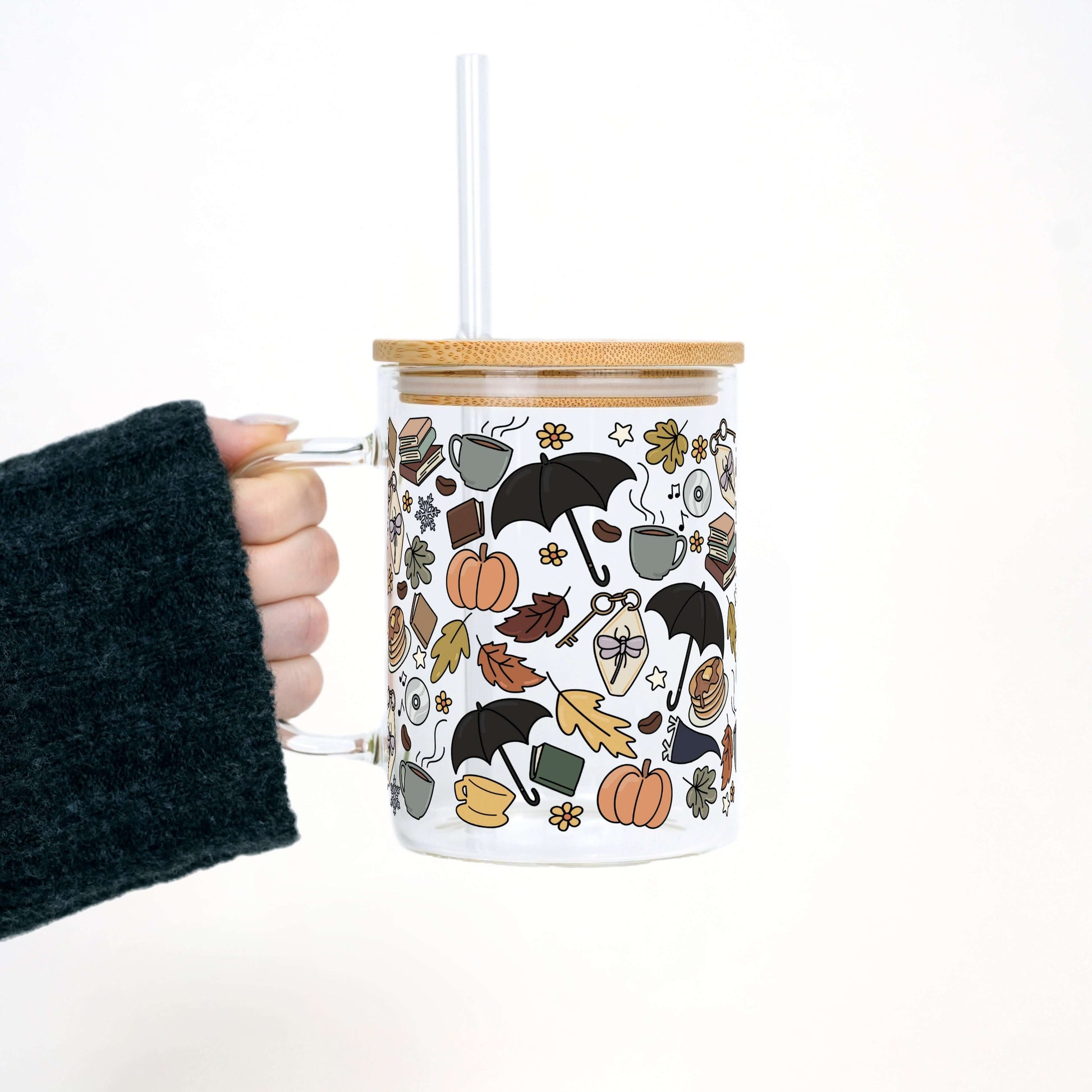 Fall Girls Clear 17oz Glass Mug With Lid and Straw