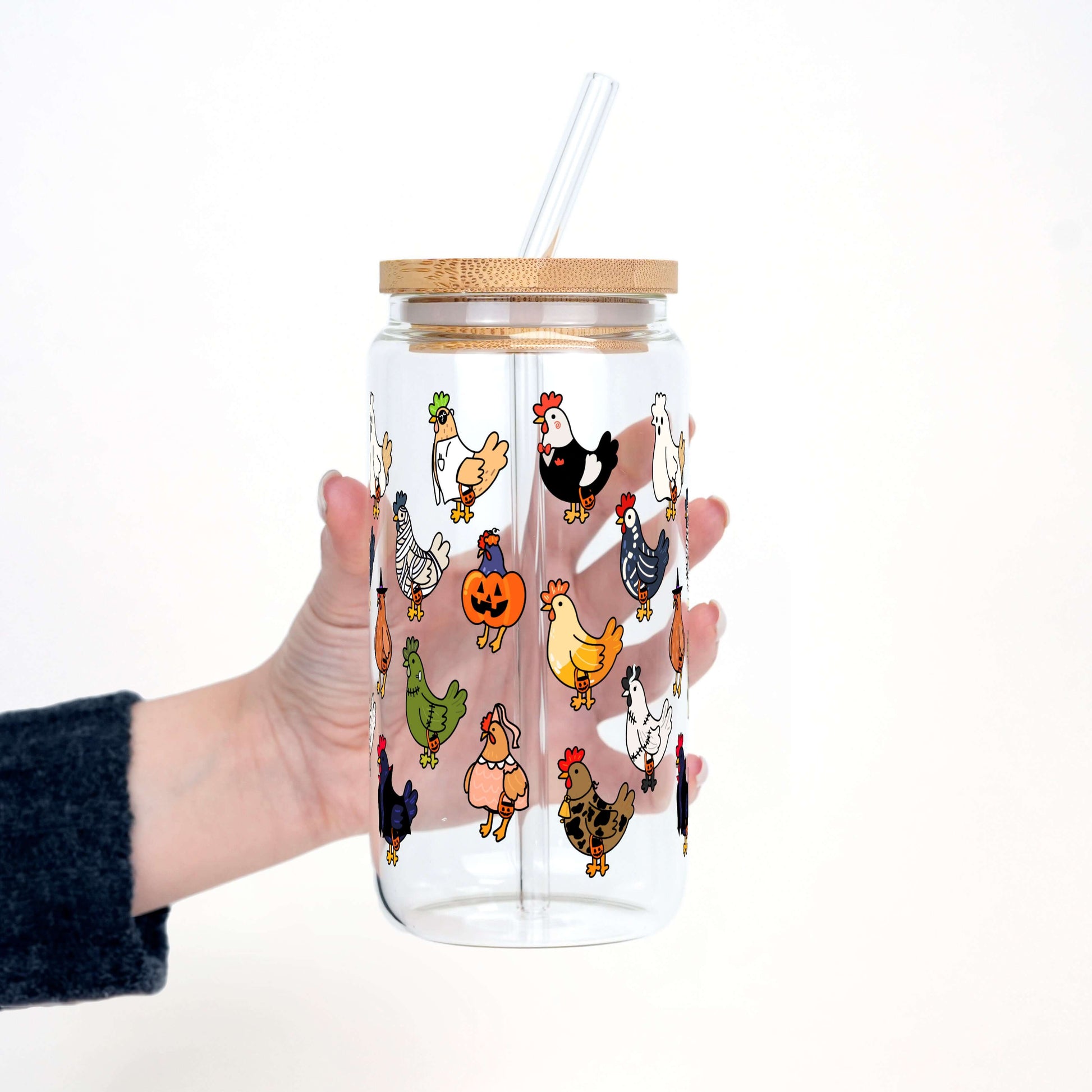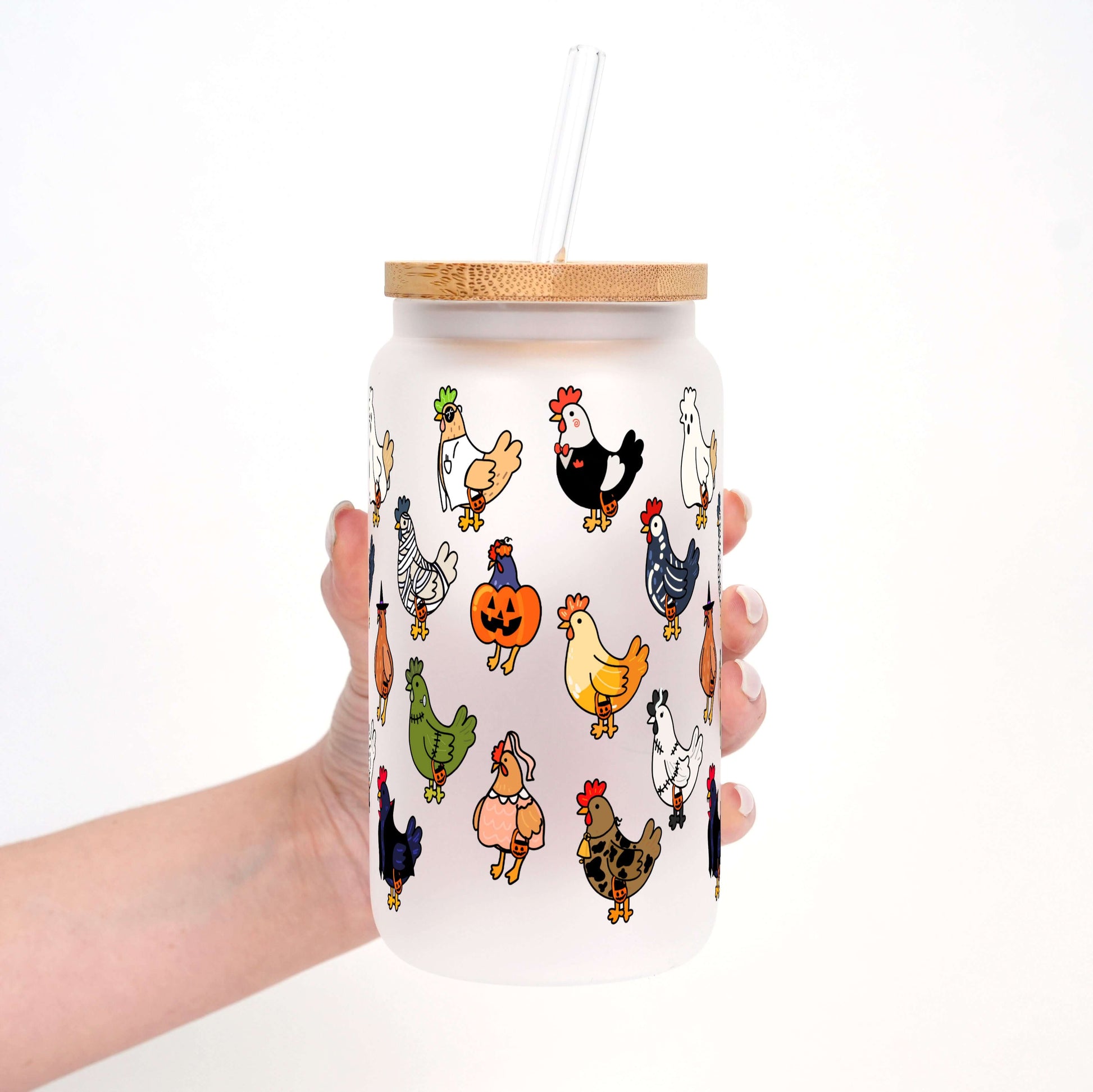 Meet the cup thatâs got more personality than your neighborâs flock. This design features a playful parade of Halloween character chickens dressed as witches, ghosts, pumpkins, and more. Itâs perfect for the farm-loving, spooky-season-celebrating, or just plain chicken-obsessed soul.