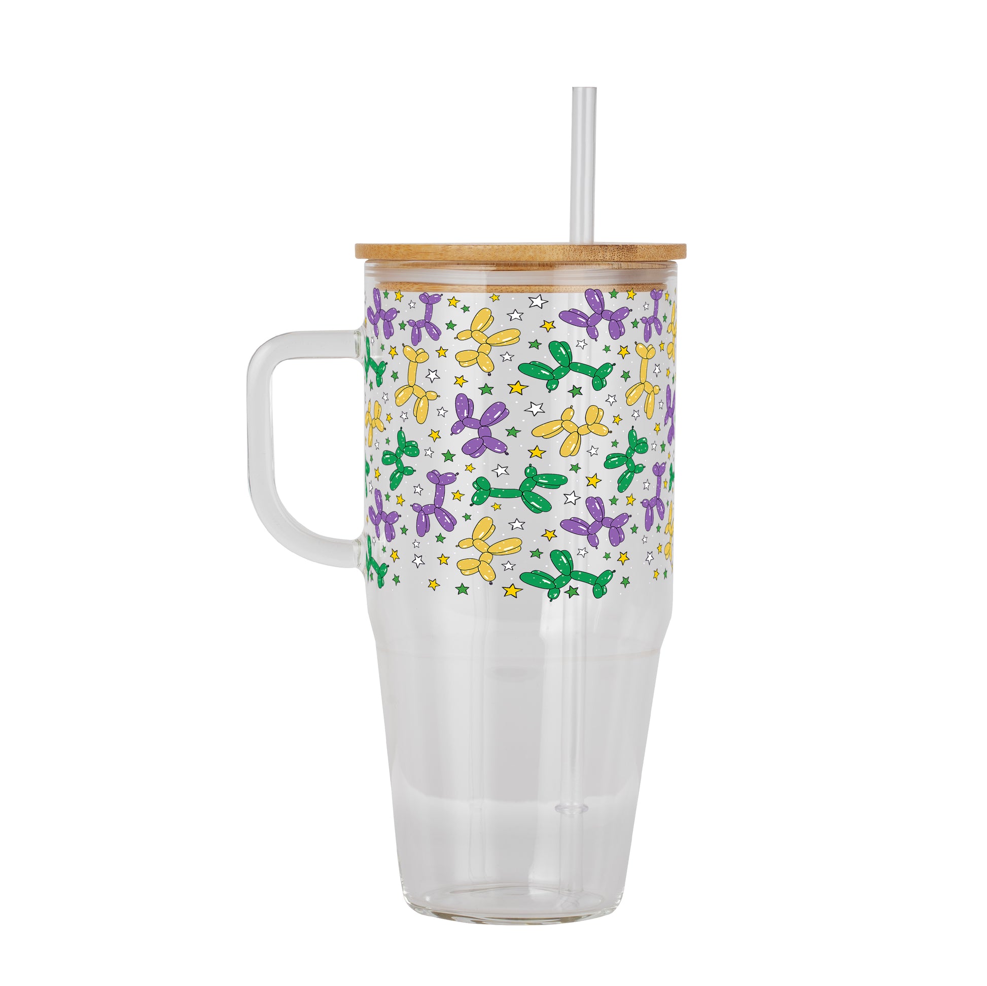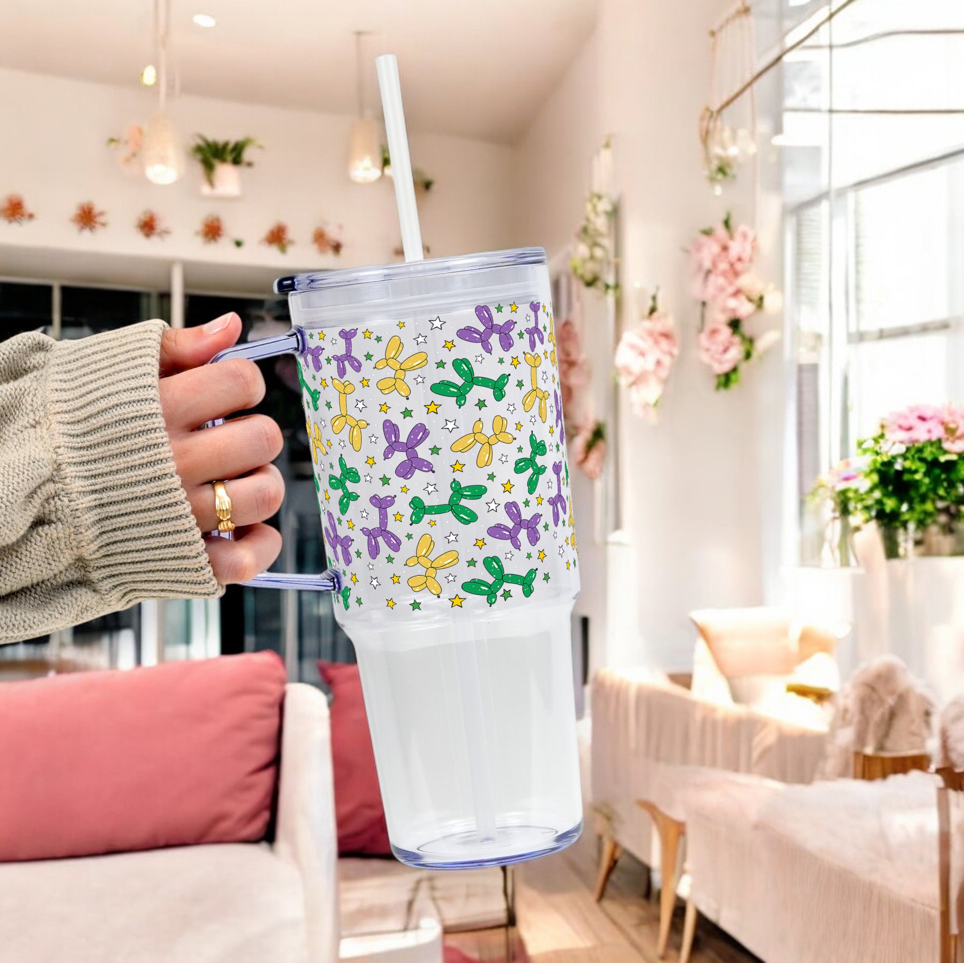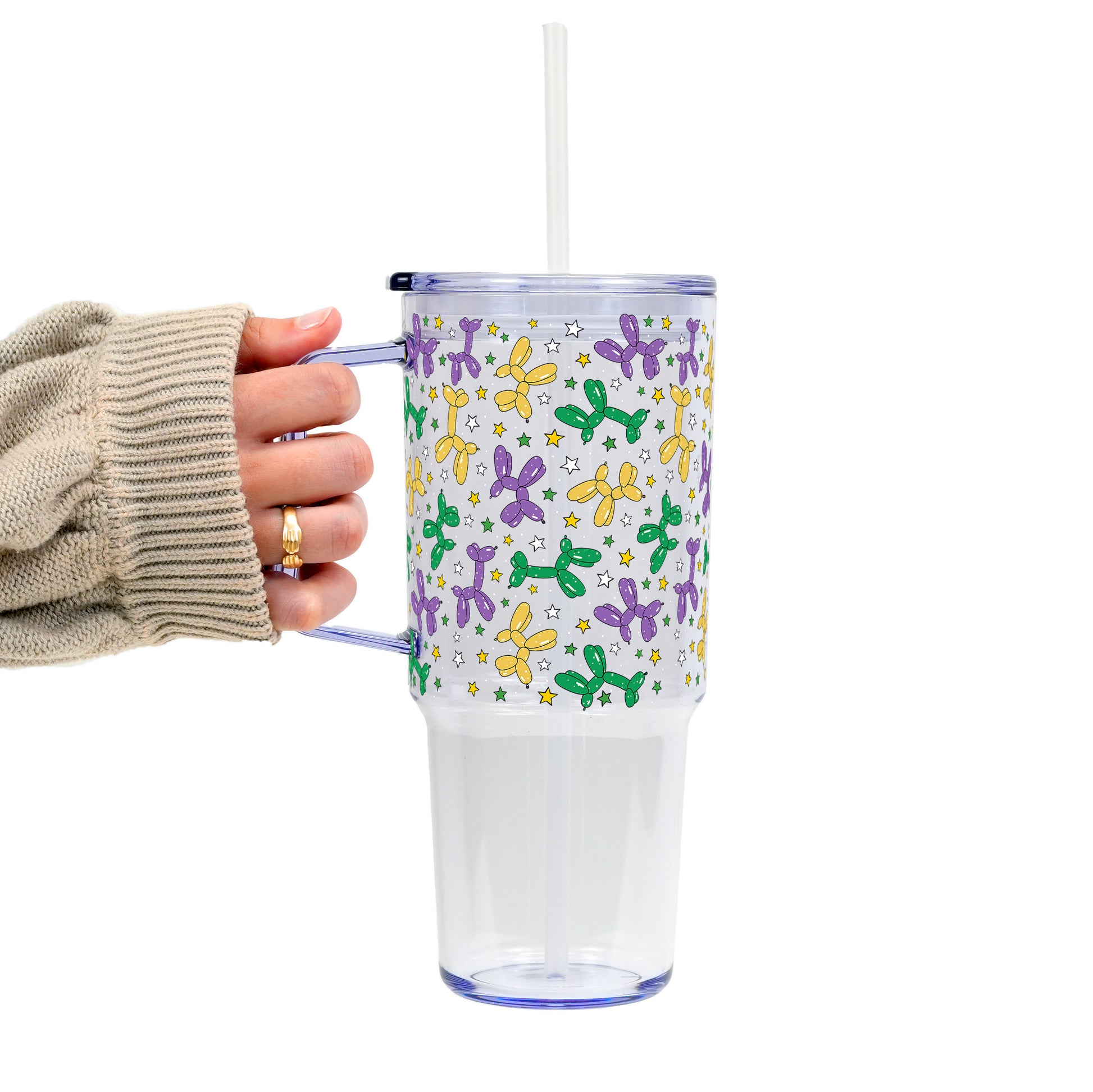 Limited Edition Metal: "Balloon Dog Mardi Gras" Tumbler with Handle Lid & Straw
