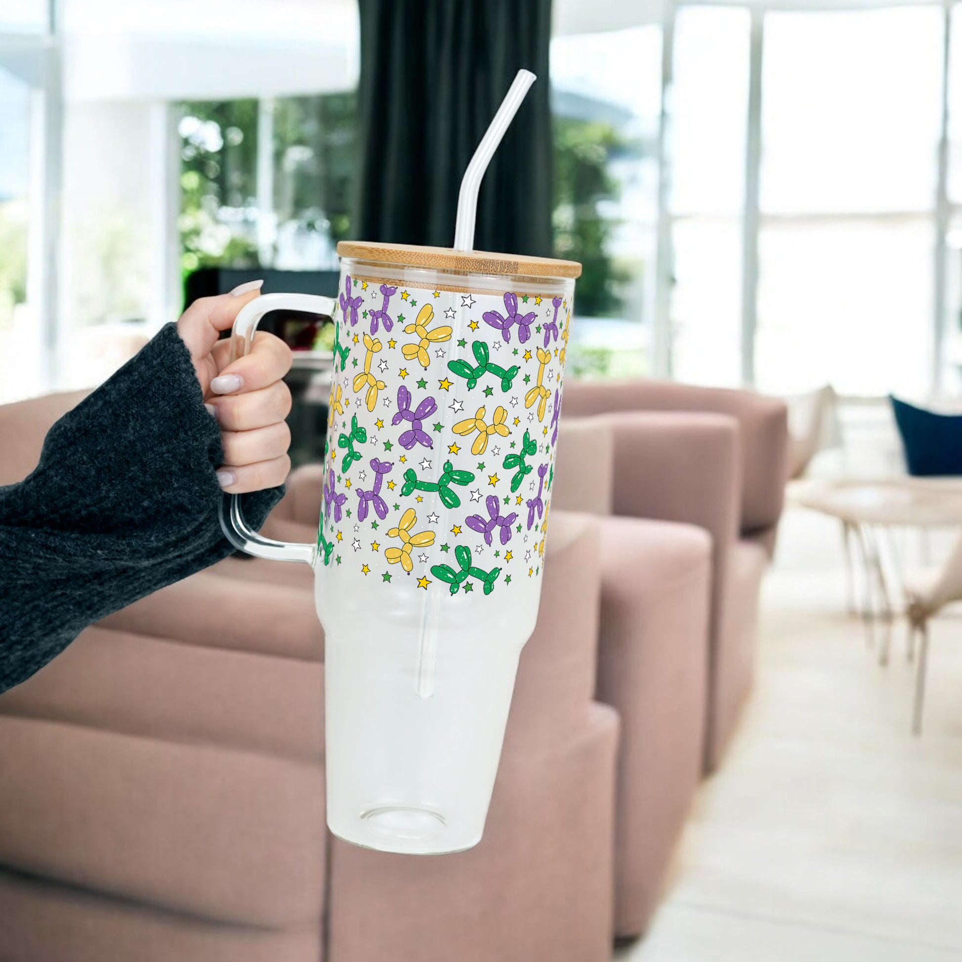 Our Balloon Dog Mardi Gras tumbler features balloon dogs on a starry background, this design is cutie parade chaos in the best way. It’s playful, loud, and absolutely here for the beads.