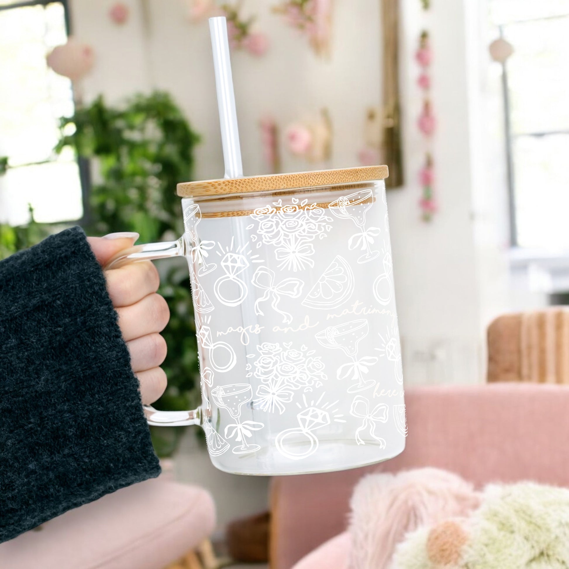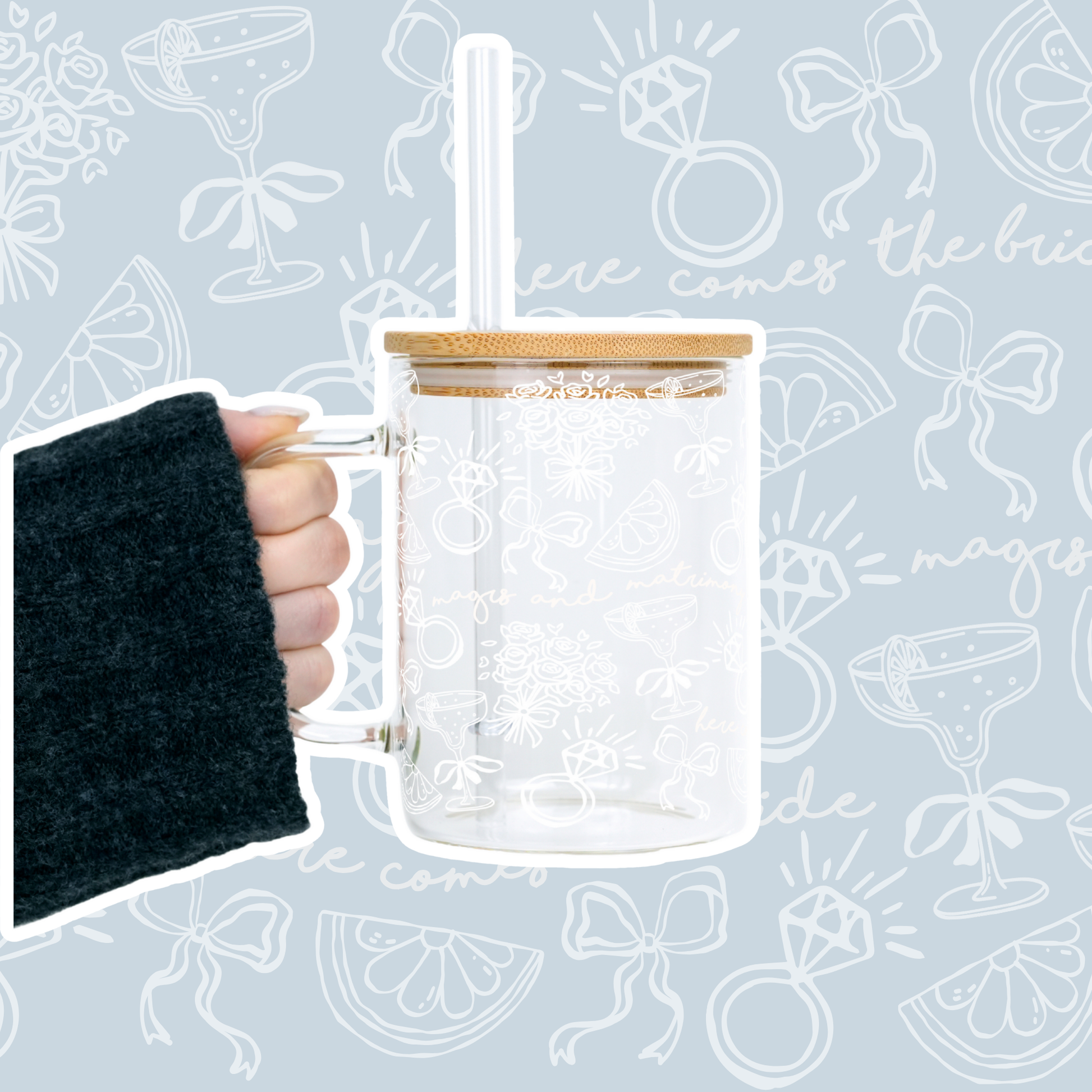 Margs and Matrimony Bride Clear Glass Mug With Lid & Straw