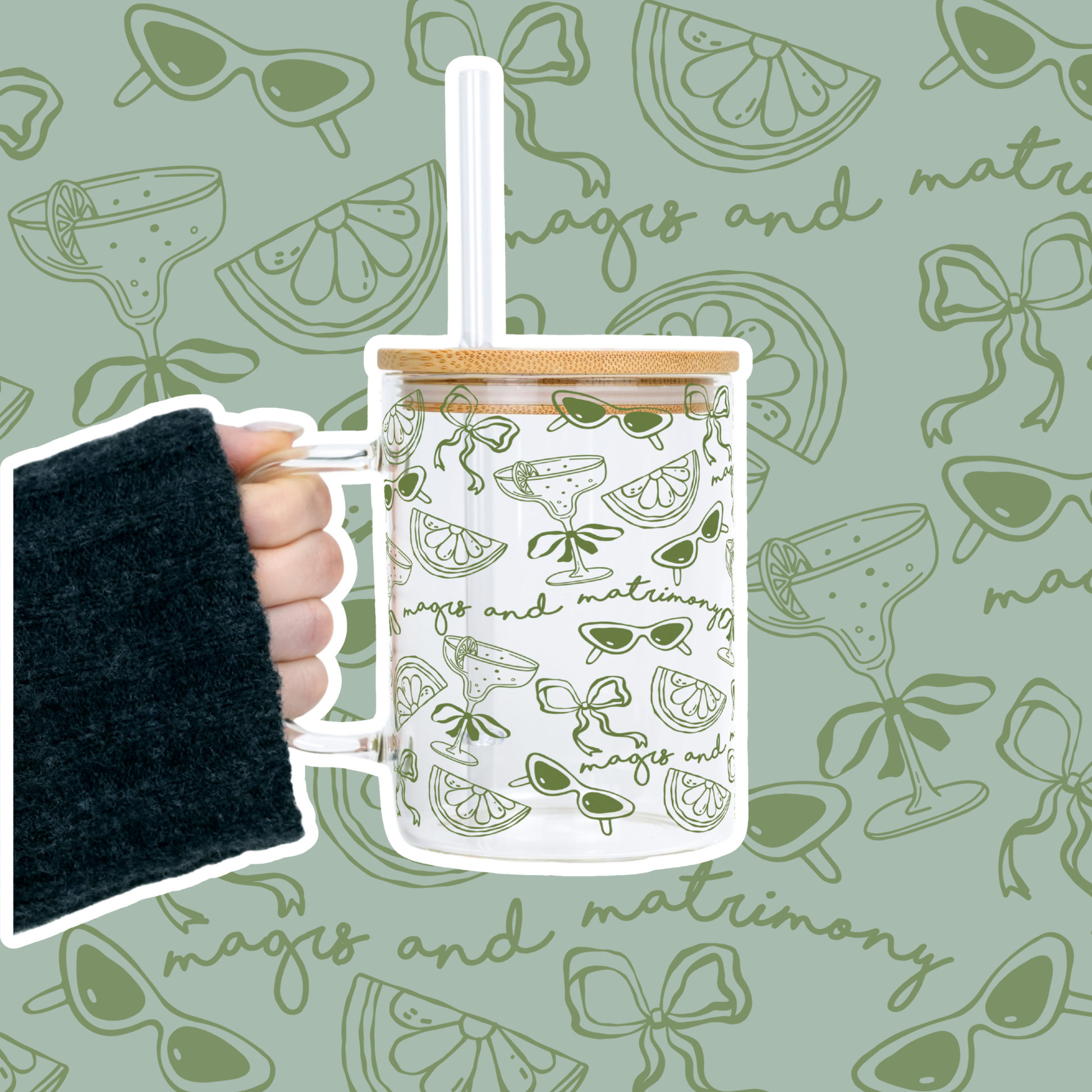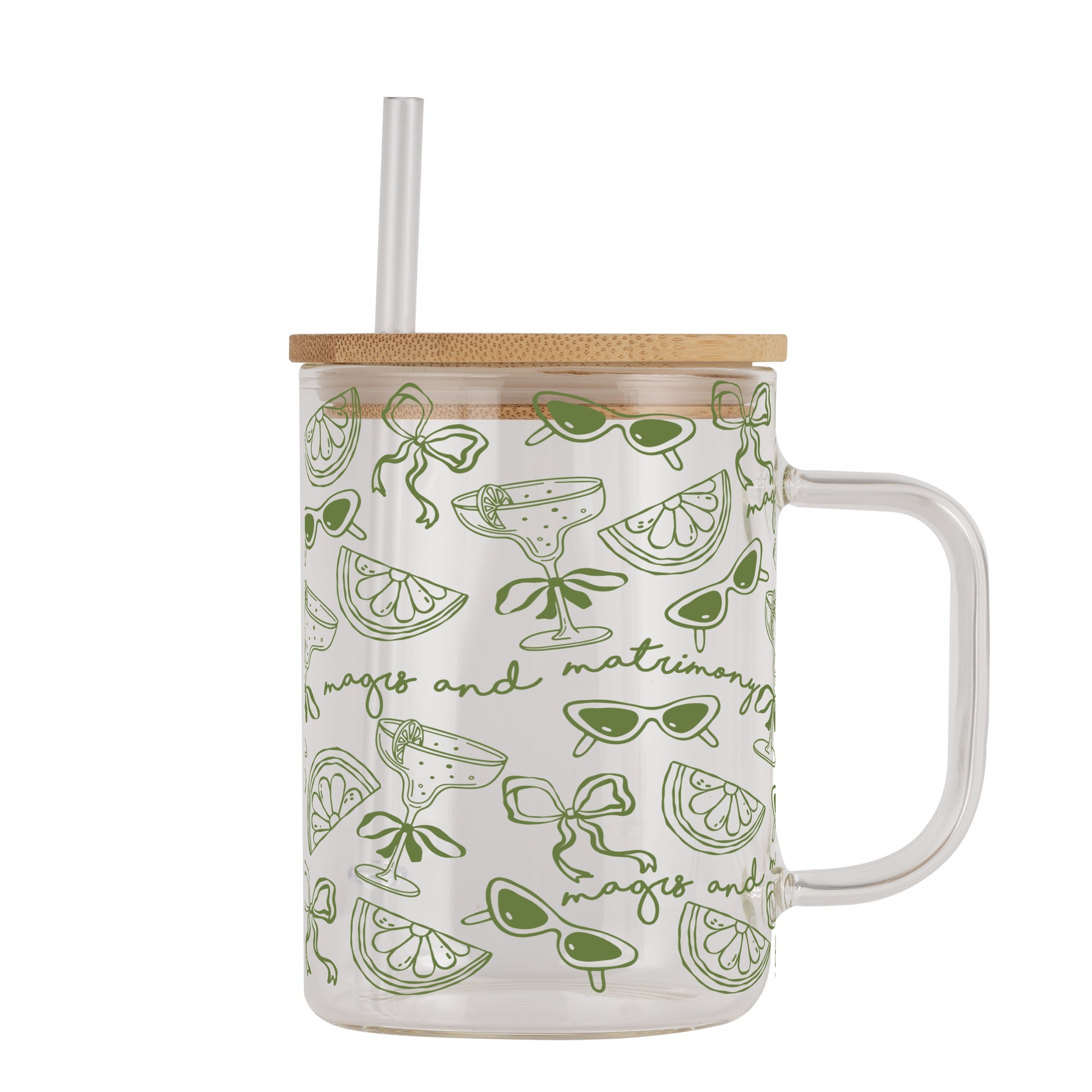 Margs and Matrimony Bridesmaids Clear Glass Mug With Lid & Straw