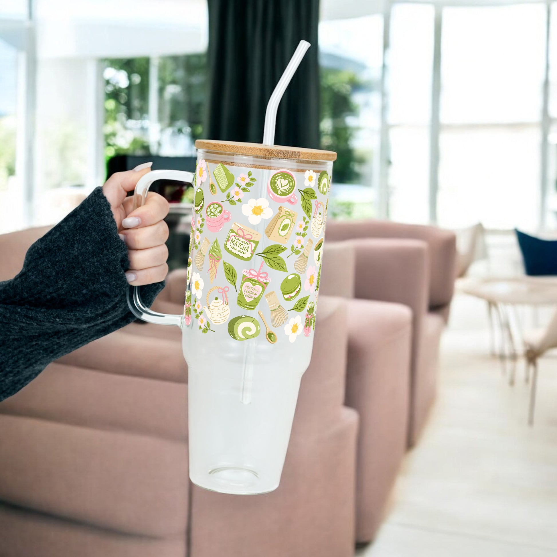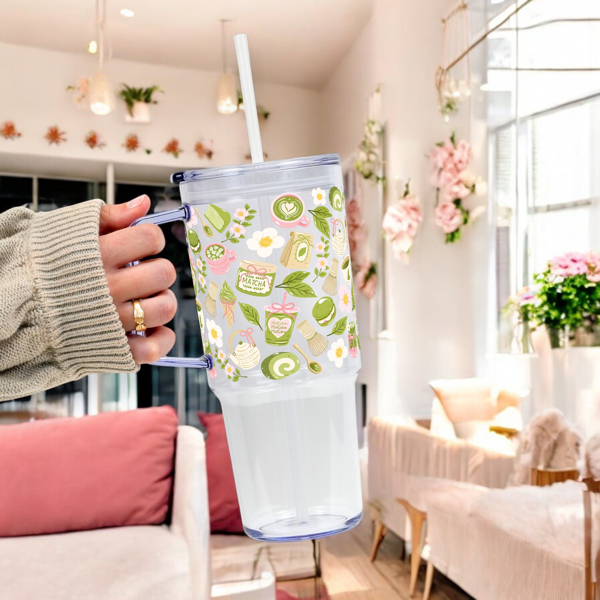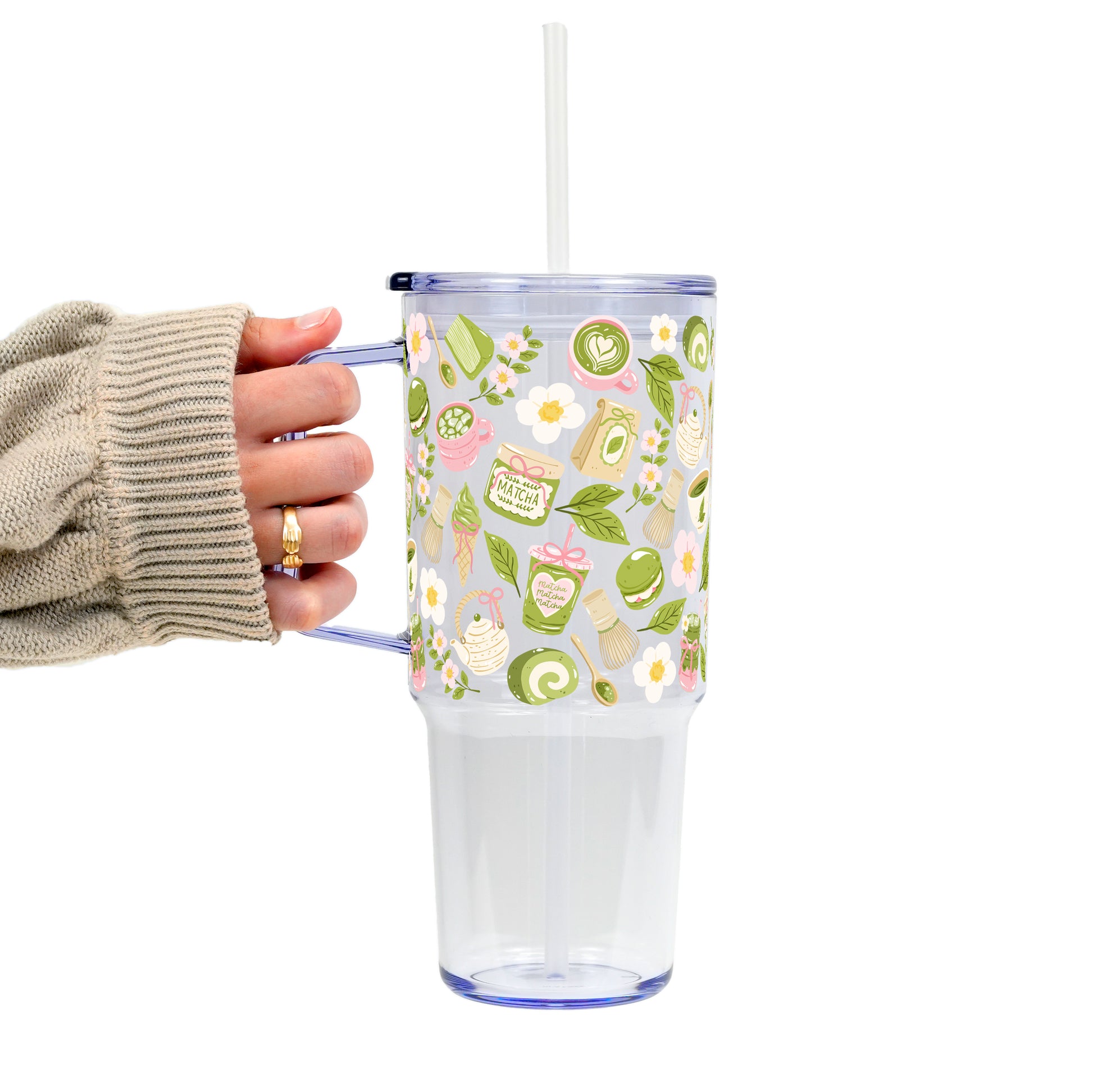 Matcha Moments Tumbler with Handle Lid & Straw