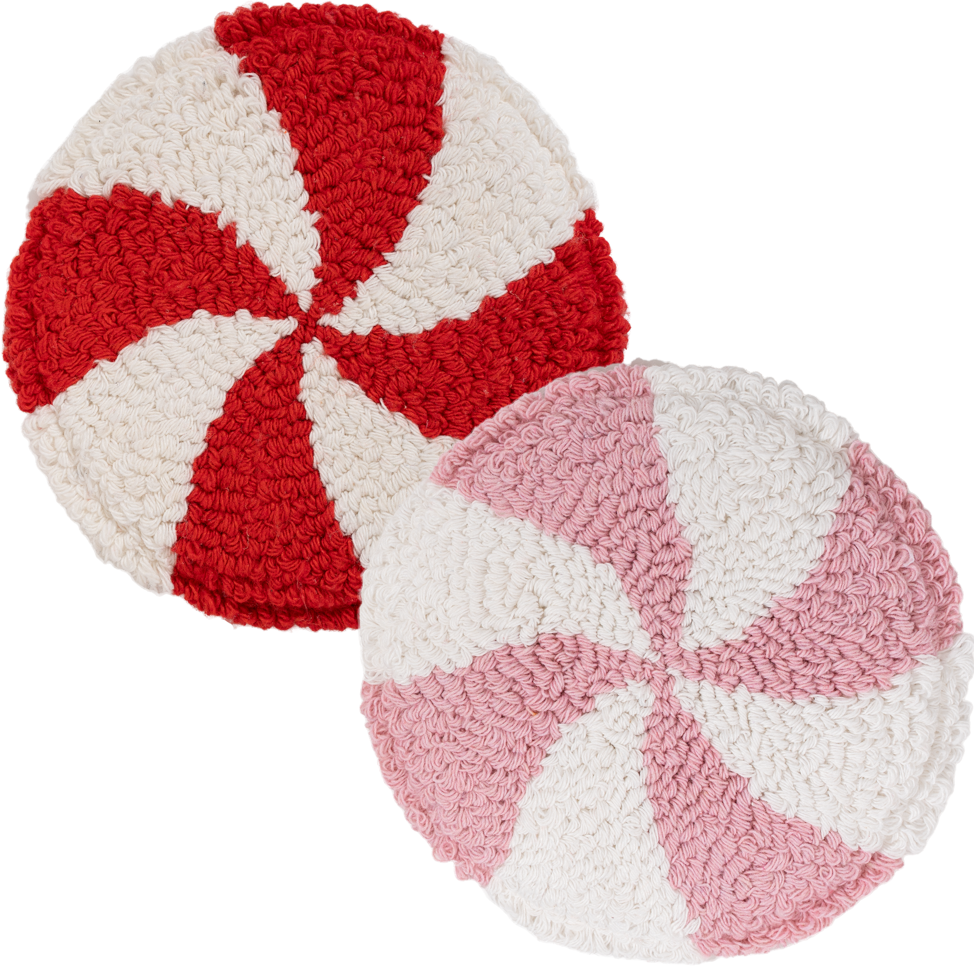 Peppermint Swirl Tufted Mug Rugs – Handmade Holiday Coasters (Red + Pink)
