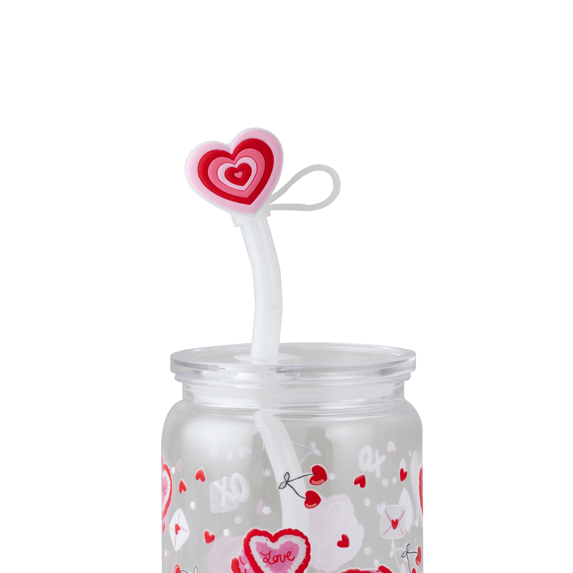 Give your tumbler a little love boost. This sweet pink and red heart topper isn’t just adorable — it keeps your drink fresh and dust-free. Designed to fit 7mm–8mm straws, our silicone heart straw topper slips right onto the straws of our glass straws