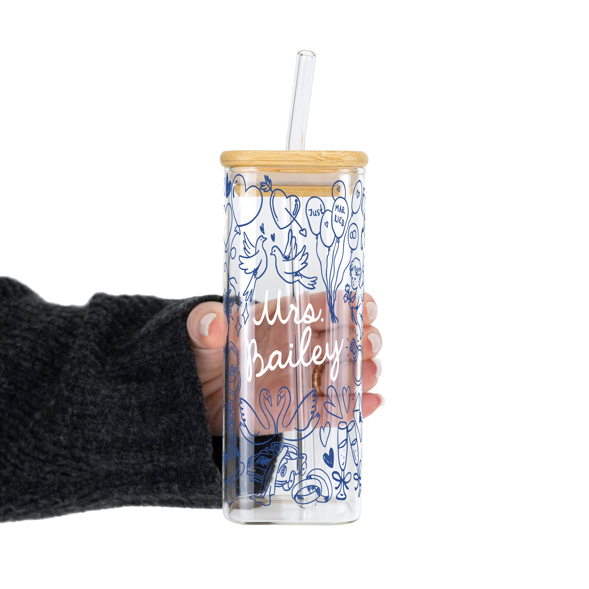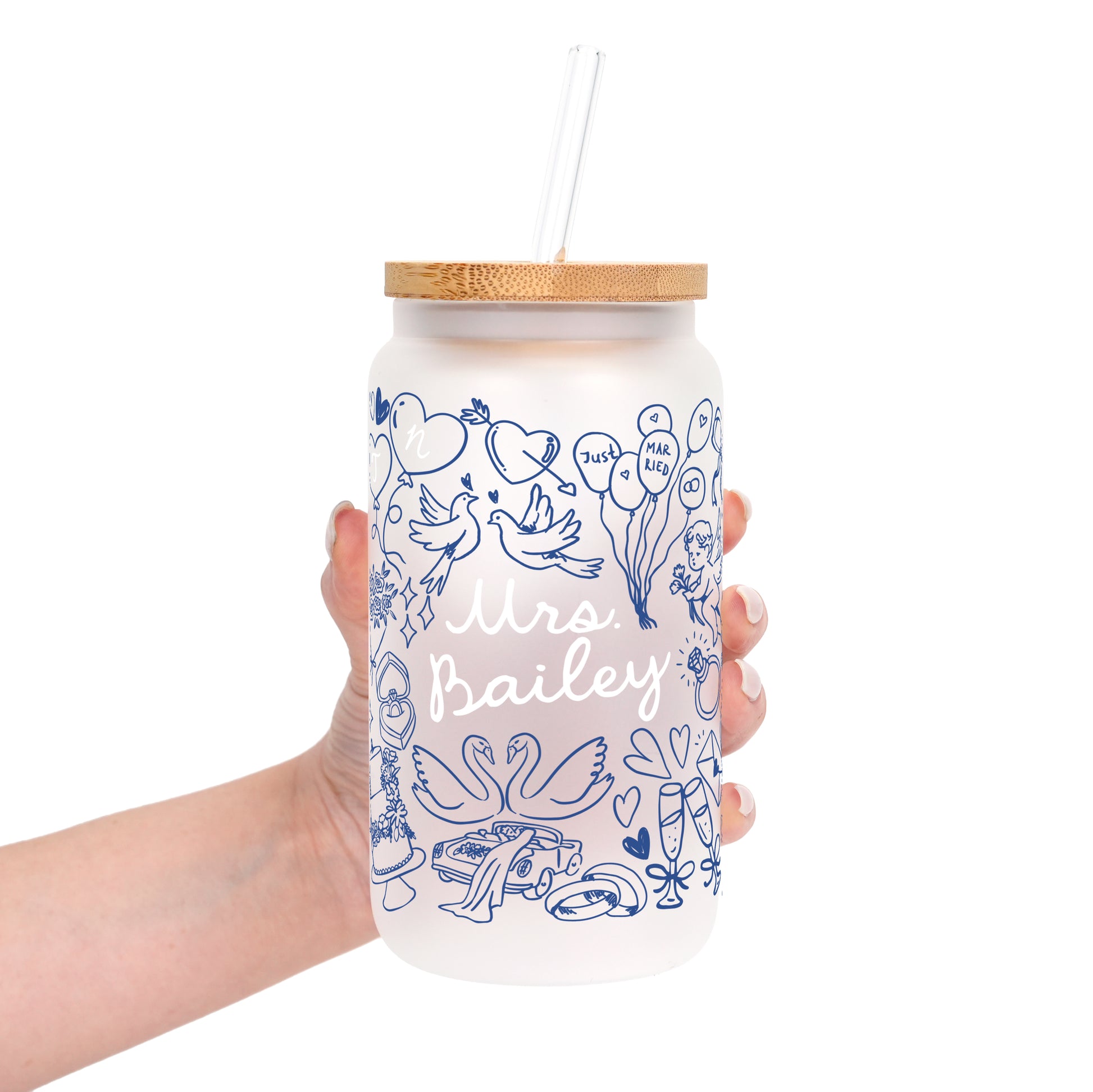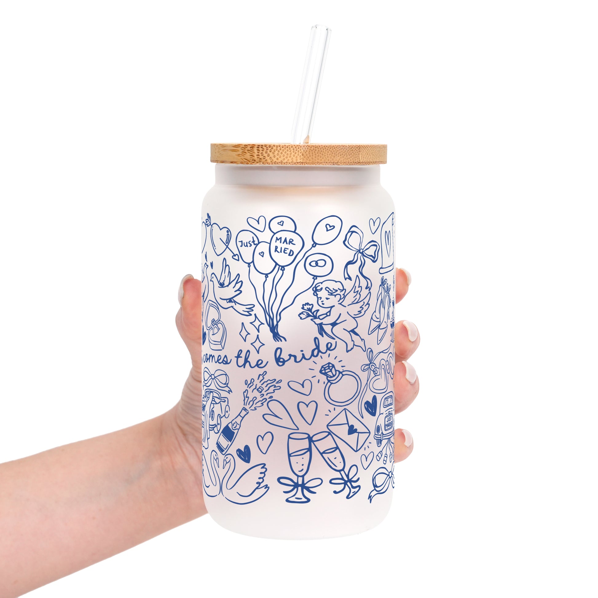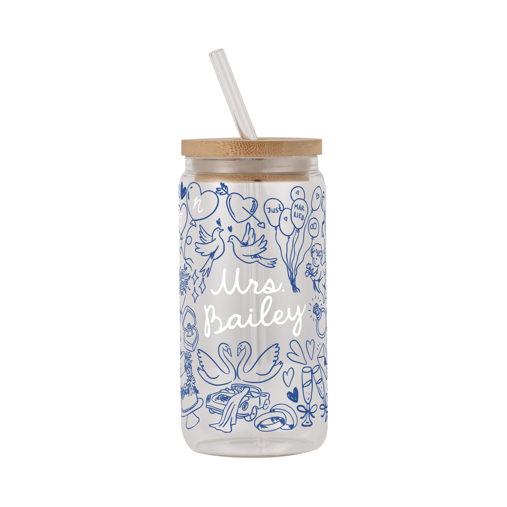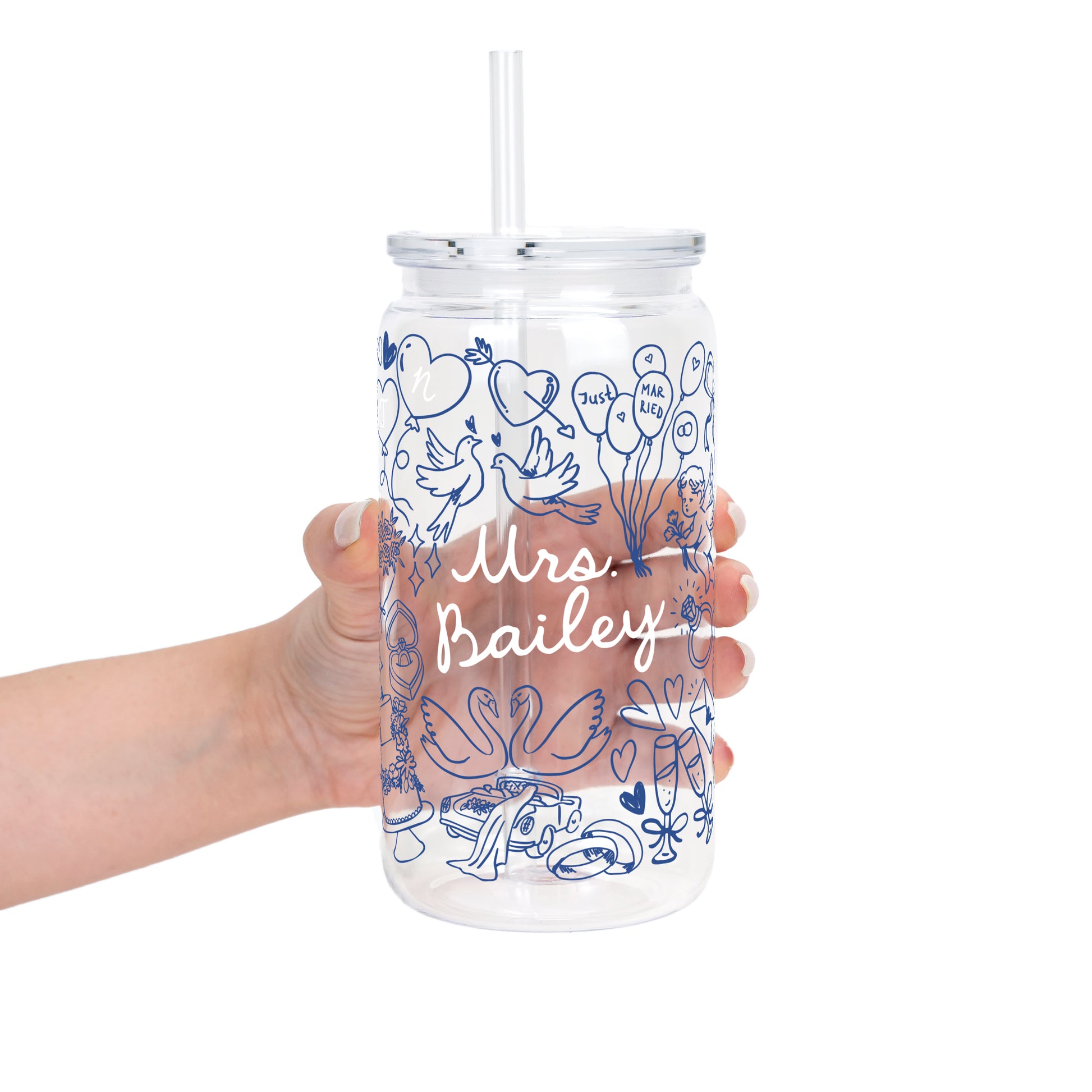 Our Something Blue Bridal Cup is a sweet nod to all things wedding magic. Featuring dainty blue bridal icons like bows, rings, champagne flutes, cherubs, hearts, and love notes, this cup feels like a little keepsake from the best chapter ever.
