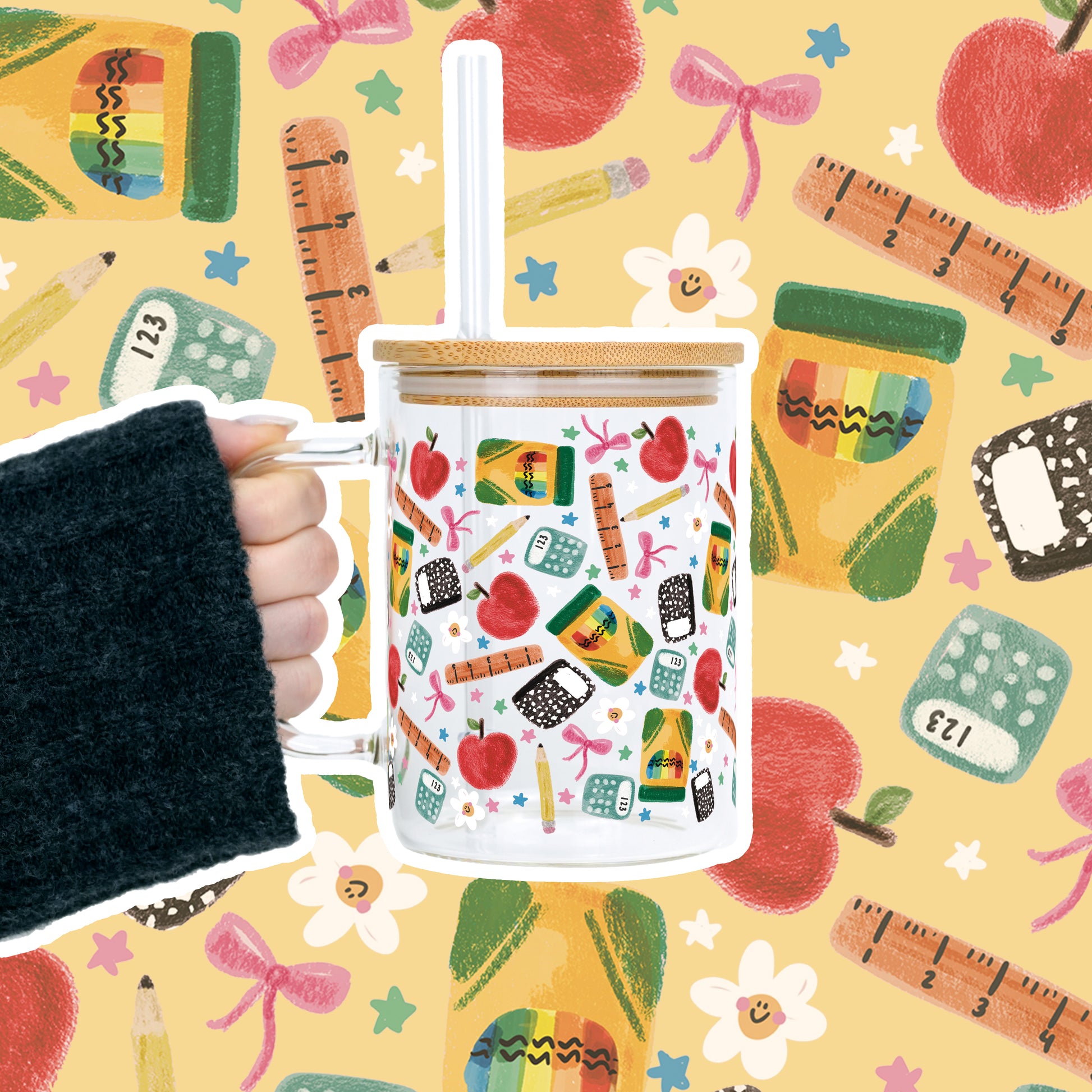 This design is a whole classroom mood. Packed with hand-drawn apples, pencils, rulers, rainbow crayon jars, notebooks, and little stars, it’s basically every teacher’s personality in one aesthetic pattern. Cute, colorful, a little chaotic ... just like a good school day.