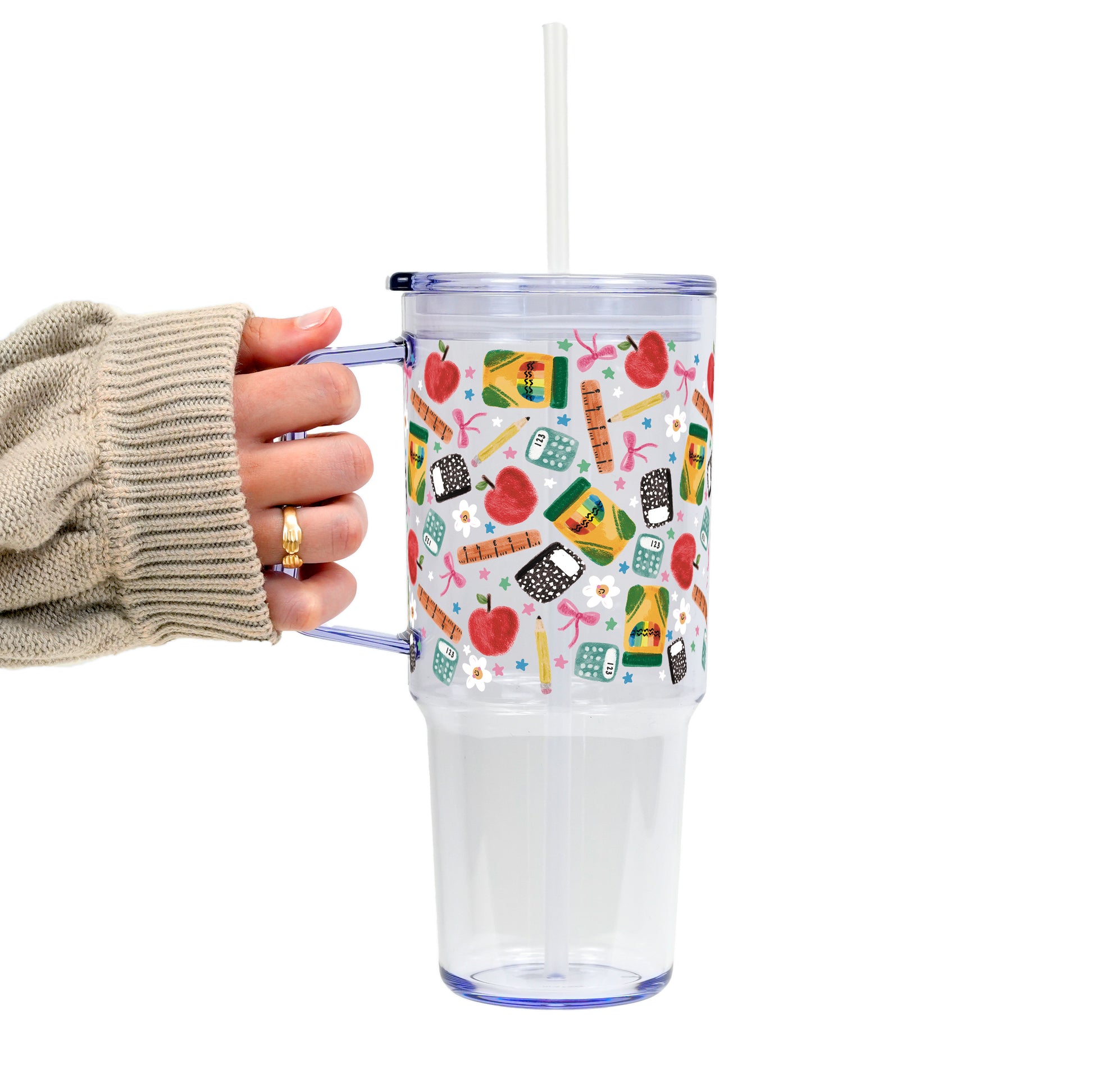 Teacher Essentials Pattern Tumbler With Lid and Straw